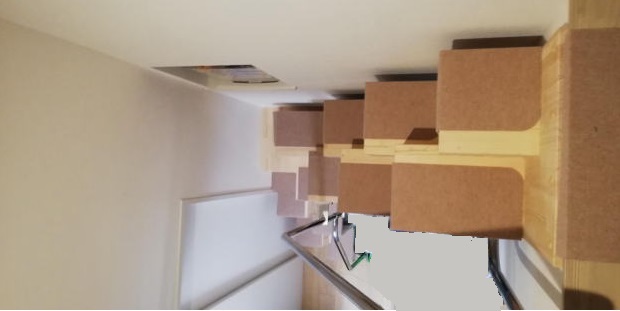 小社モデルルームにある家具階段7段 上った所が狭いですが、上ることは可能です。